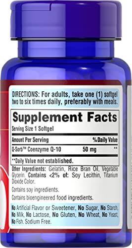 Q-Sorb CoQ10 50mg, Contributes to Heart Wellness,100 Softgels by Puritan’s Pride